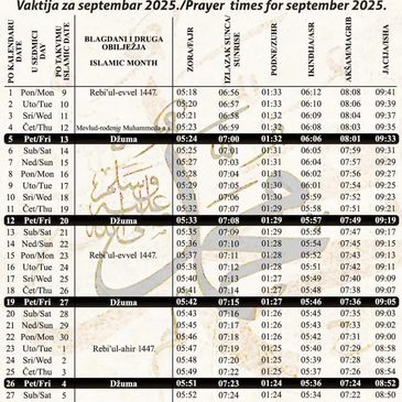 Prvi bajram namaz je u 8:04 AM. Rani sabah je u 6:50 AM Bajram nama vodi Fejlem ef. Salkić.